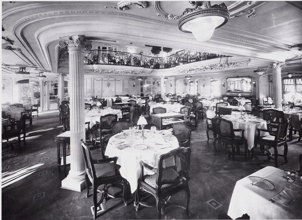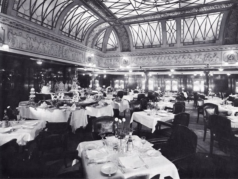 Co do dwupoziomowych jadalni to jakoś nie mogę się do nich przekonać i rozwiązanie z Titanica najbardziej mi odpowiada. O ile na zdjęciach Imperatora i Duilio jeszcze to jakoś wygląda to oglądając np. wnętrze Empress of Ireland:
