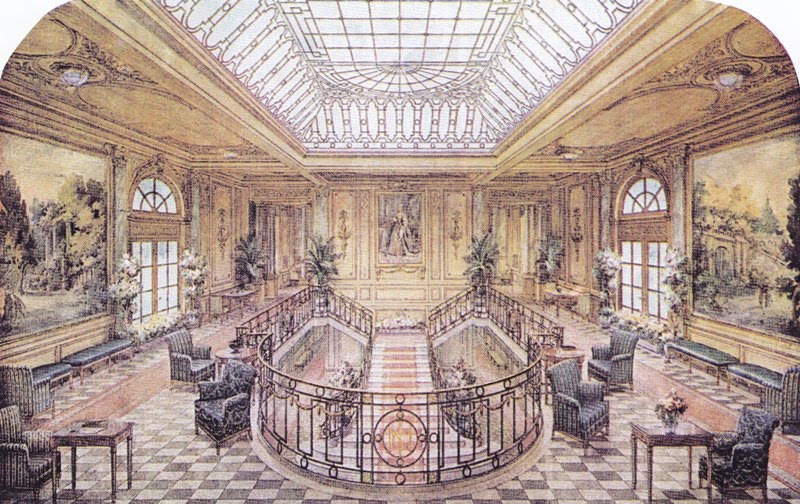 Natomiast CGT ze swoją France która zaczęła swoją służbę chwilę po katastrofie Titanica była już statkiem wspanialszym niż on. Oczywiście wypada zaznaczyć że pojęcie luksusu a co za tym idzie również takowej architektury wnętrz różniło się dla Brytyjczyków i Francuzów. W wyniku tego France otrzymała wystrój mocno - pozwolę sobie tutaj użyć słowa - frywolny, w porównaniu do dyskretnie eleganckich wnętrz Titanica. Tak więc o ile na France można szukać inspiracji pałacami tak na Titanicu będą to raczej Jakobińska rezydencja.